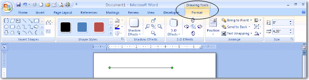 Select the line, click the Drawing Tools option that appears on the menu. A new Format tab will appear with a range of different formatting tools for the shape.